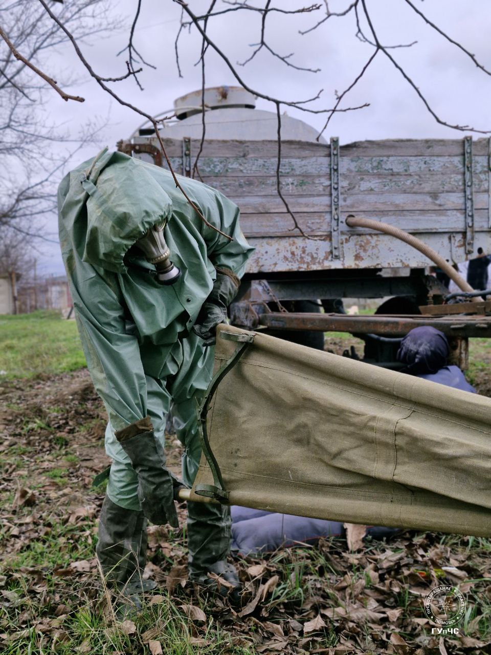 ✔Специалисты санитарной службы оценили направление ветра и определили зону поражения, её оцепили АСП г. Днестровск.